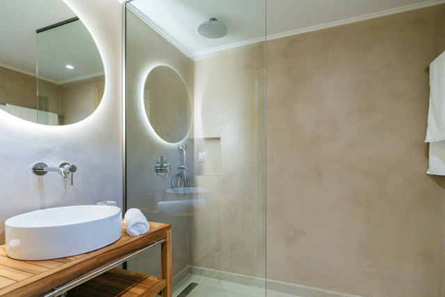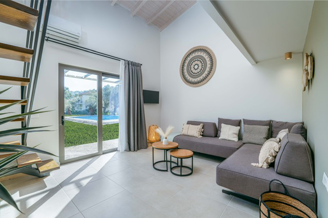 - μεγάλες βεράντες με θέα την πισίνα και τον κήπο